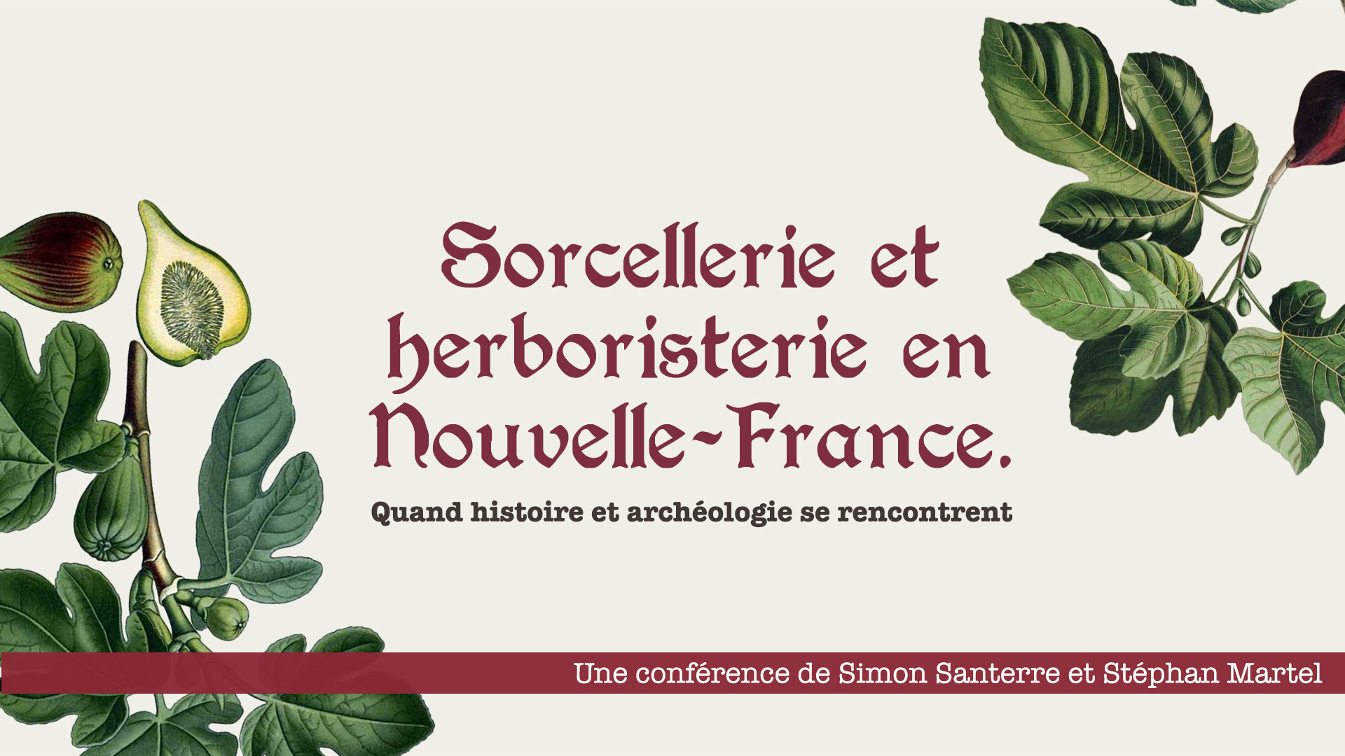 Sorcellerie et herboristerie en Nouvelle-France : quand histoire et archéologie se rencontrent par Simon Santerre et Stéphan Martel. Conférence sur l’herboristerie et la sorcellerie en Nouvelle-France.
